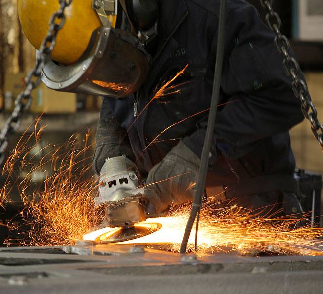 仕上げグループは、火花を散らしながらグラインダーで不要な部分を削り取り、製品を美しく整える職人集団です。磨き上げた瞬間のきれいな仕上がりは、まるでストレスが消えていくような爽快感があります。