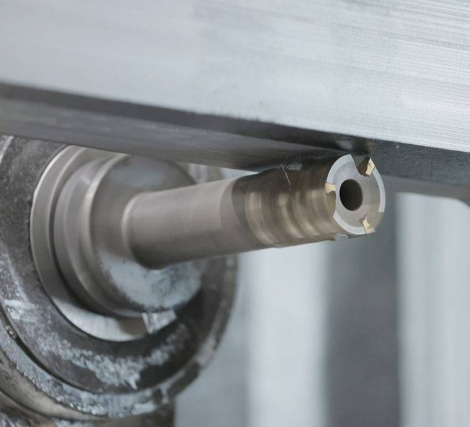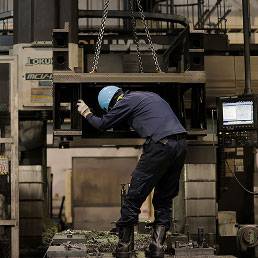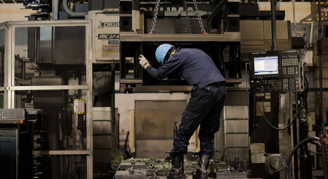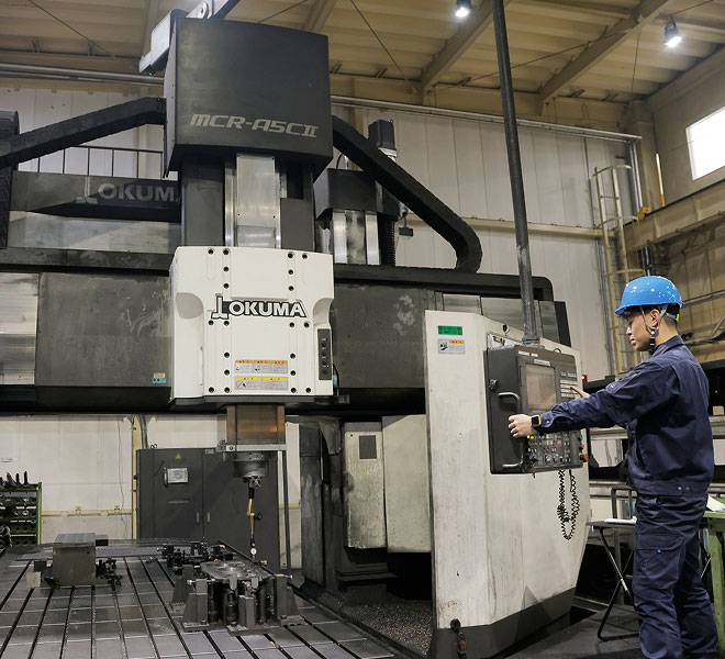機械加工部門では、鋳物素材はもちろん、製缶品やアルミなど幅広い素材をマシニングセンターで精密に加工しています。製品をセットする段取り作業や量産製品における刃具の交換・管理までを一貫して担当し、多様な製品に対応できる柔軟な生産体制を実現しています。