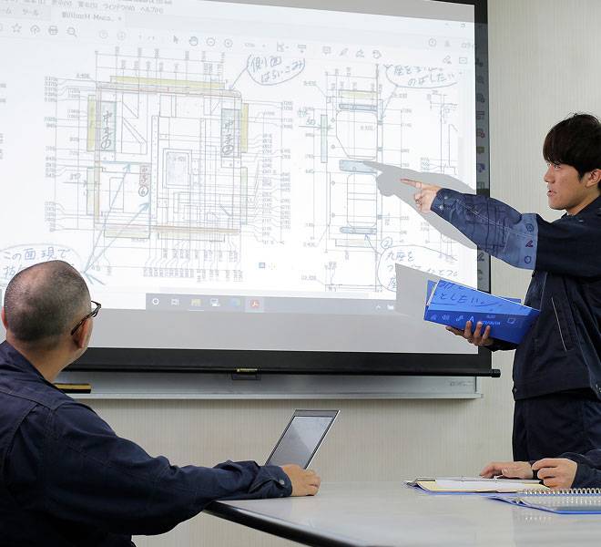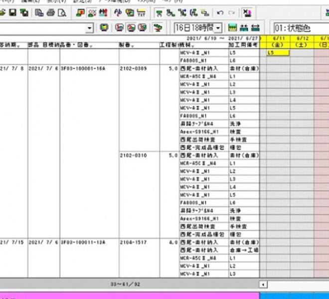 お客様から要求される納期と製造現場での品質保持・生産効率を俯瞰的にとらえ、最善のスケジュールを作り上げ、双方に展開をします。作り上げたスケジュールにおける進捗状況を随時把握・的確な調整を行い、ものづくり現場をサポートしています。