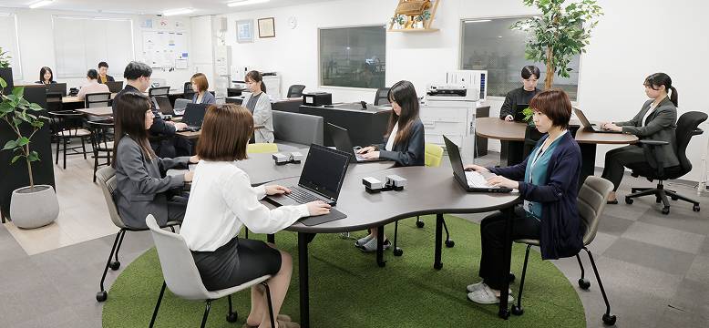社員が働きやすくリフレッシュできるスペースを完備し、社員の働きやすさをサポートしています。また、オンライン・ミーティング専用エリアを社内に設けるなど、時代の変化に対応した働く環境づくりを進めています。