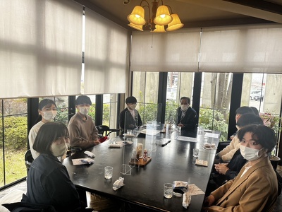 2回目となりました内定者懇談会。12月なので「クリスマス ランチ会」と題し、緊張を和らげる気持ちで少しだけ演出してみました。ランチの後はグループワークの他に、社員証用の撮影や制服のサイズ合わせなども行いました。