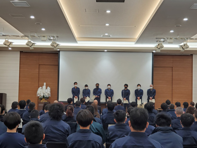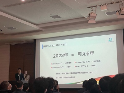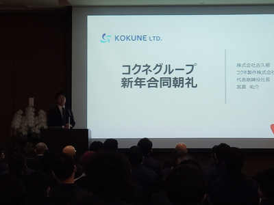 1月6日に西尾コンベンションホールを貸し切り、新体制で初のコクネグループ新年合同式典を開催致しました。新役員の紹介から始まり、辞令交付や改善提案表彰、永年勤続表彰などを行いました。また宮島社長からは業績及び状況報告で、「2023年は考える年」という大変厳しいお話もありました。コクネグループ全社員が新たな経営陣と共に、皆様に必要とされる企業であり続ける努力をしていく所存でございます。本年もどうぞよろしくお願い申し上げます。