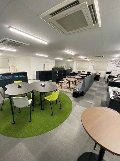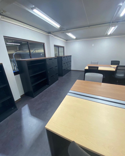 コクネ製作(株)の2階の事務所と1階の現場事務所が有難いことに社員が増えて少し狭く感じていたのですが、今回1階の現場事務所を広くし、2階はアドレスフリーのスペースを増やしてより良い環境に整えていただきました。こちらは2階の事務所の様子です。