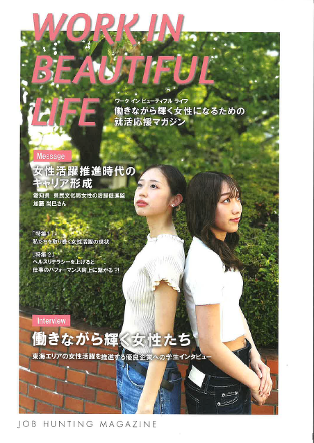 ユタコロジー株式会社様×椙山女学園大学現代マネジメント学部 東ゼミの産学協働プロジェクトに協賛し、働きながら輝く女性になるための就活応援マガジン『WORK IN BEAUTIFUL LIFE』に掲載していただきました。取材を受けた弊社 生産管理部調達課のA.Yさんには、弊社に入社した理由や仕事内容、学生の方へのアドバイスを語ってもらいました。これから就職活動をされる学生の皆様に、是非お読みいただければと思います。