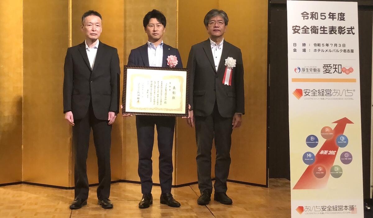 令和5年度『安全衛生に係る優良事業場、団体又は功労者に対する厚生労働大臣・愛知労働局長表彰』表彰式に参加致しました。 愛知労働局長奨励賞(地域の中で、安全衛生に関する水準が良好で...