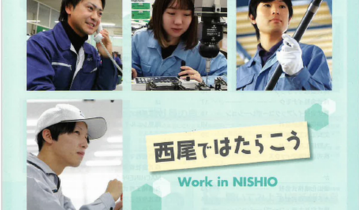 今年も、西尾市の就活応援ガイドブックに掲載していただきました! 表紙には、コクネ製作(株)組立グループのグループリーダーKさんが掲載されています。