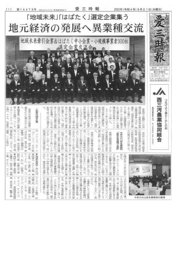経済産業省の「地域未来牽引企業」と中小企業庁の「はばたく中小企業・小規模事業者300社」の2制度に選定された企業を対象にした異業種交流会が行われました。その様子が掲載されています。