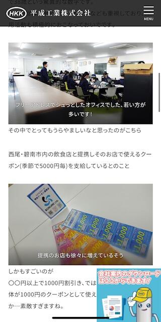 平成工業株式会社ホームページにて弊社の紹介をしていただいております。 平均年齢や福利厚生の事など色々書いてくださっていますので、下記リンクより是非ご覧ください! リンクテキスト