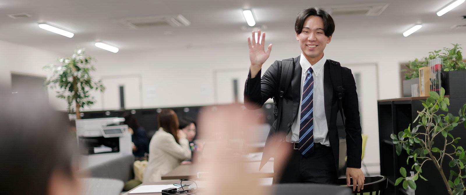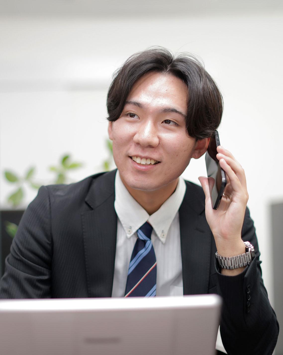 現在は、大学時代に培った行動力を武器に、営業担当として全国のお客様を訪問し、新規開拓から受注後のフォローまで幅広く業務を担当しています。