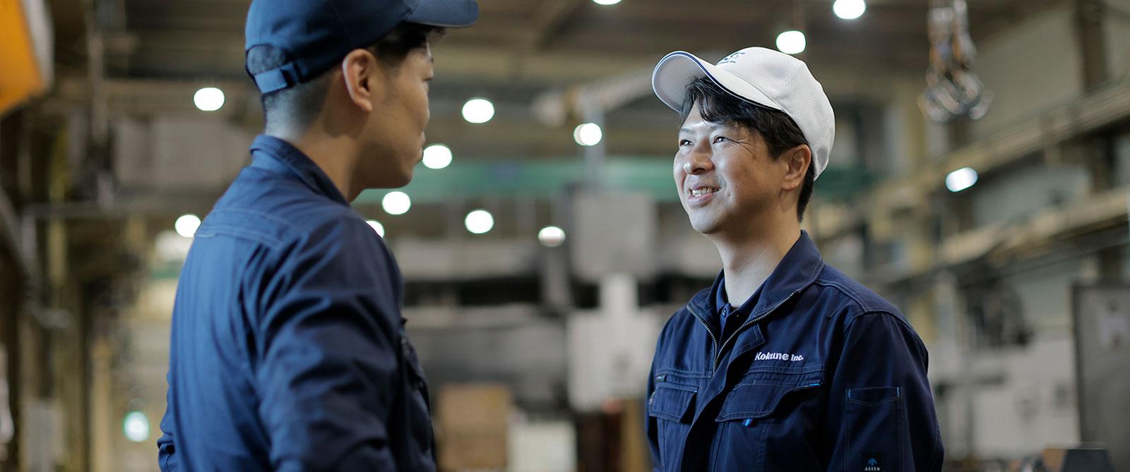 【PROFILE】 碧南生まれ・西尾育ちのアクティブボーイです。 趣味はキャンプ、BBQ、釣り、料理とアウトドア中心で、たまにお酒も楽しみます。友人からの紹介でKokuneを知り、加工課で金属加工を2年間経験したのち、 現在は生産管理課で 生産計画から運搬まで幅広く担当 しています。現場の状況を理解しているからこそできる調整力を武器に、日々の生産を支えています。